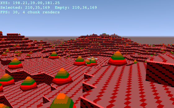 “Cubes” is an experimental game, or perhaps game engine, in the genre of, but hopefully not an exact clone of, Minecraft. It aims to be user-programmable, allowing the construction of blocks out of blocks in order to define the gameplay. It is implemented in JavaScript and WebGL, so you can play it online using a WebGL-supporting browser.
